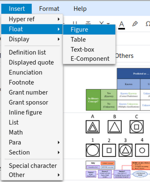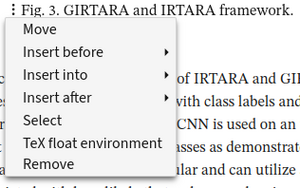 - This is a contextual menu. You can insert different elements if the document structure allows to. For example, in the author field, you cannot insert a math element, or inside the abstract, you cannot insert a float-figure or float-table. So the listing of possible elements in the menu depends on where you cursor is at present.