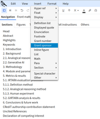 The funding details such as the grant sponsors and grant numbers are included in the Acknowledgements section found above to the reference part. You can directly edit this in the HTML view or click where you want to place the new addition and opt for [Grant sponsor] or [Grant number] tab from the [Insert] menu.
