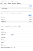 1. Author name: Note down the authors' name in the [Authors] tab. "Surname" and "Given name" needs to be carefully filled in.