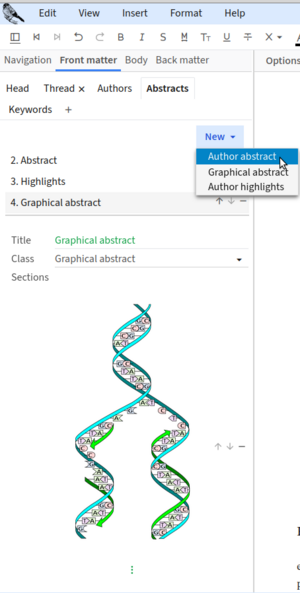 • Editing abstract portion: The edits can be made either in the field within this tab or directly in the main editor.