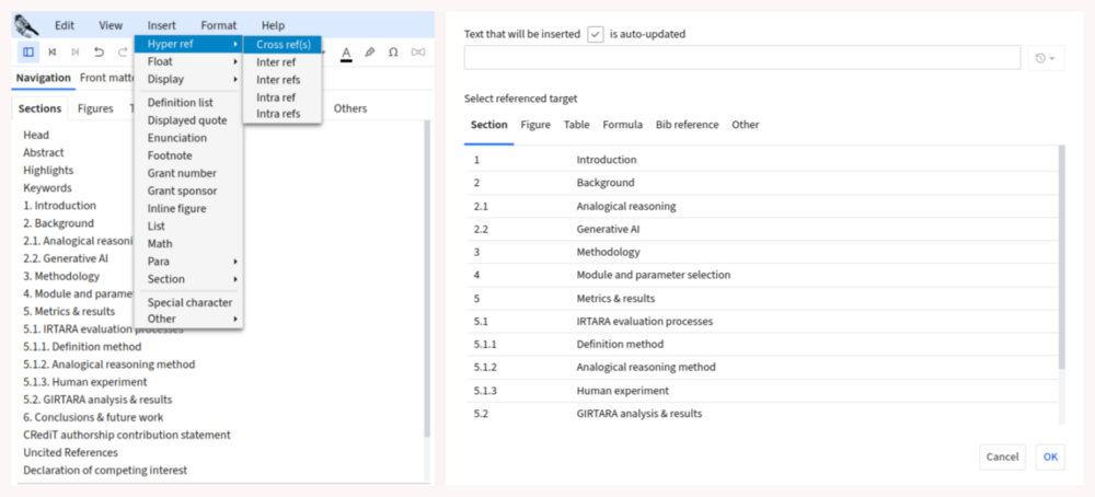 Step 2: Credit Author Statement will be the first in the Special Sections. We must place the cursor at the end of the Body part (Conclusion) in the Main Editor, and navigate to the Insert Menu.